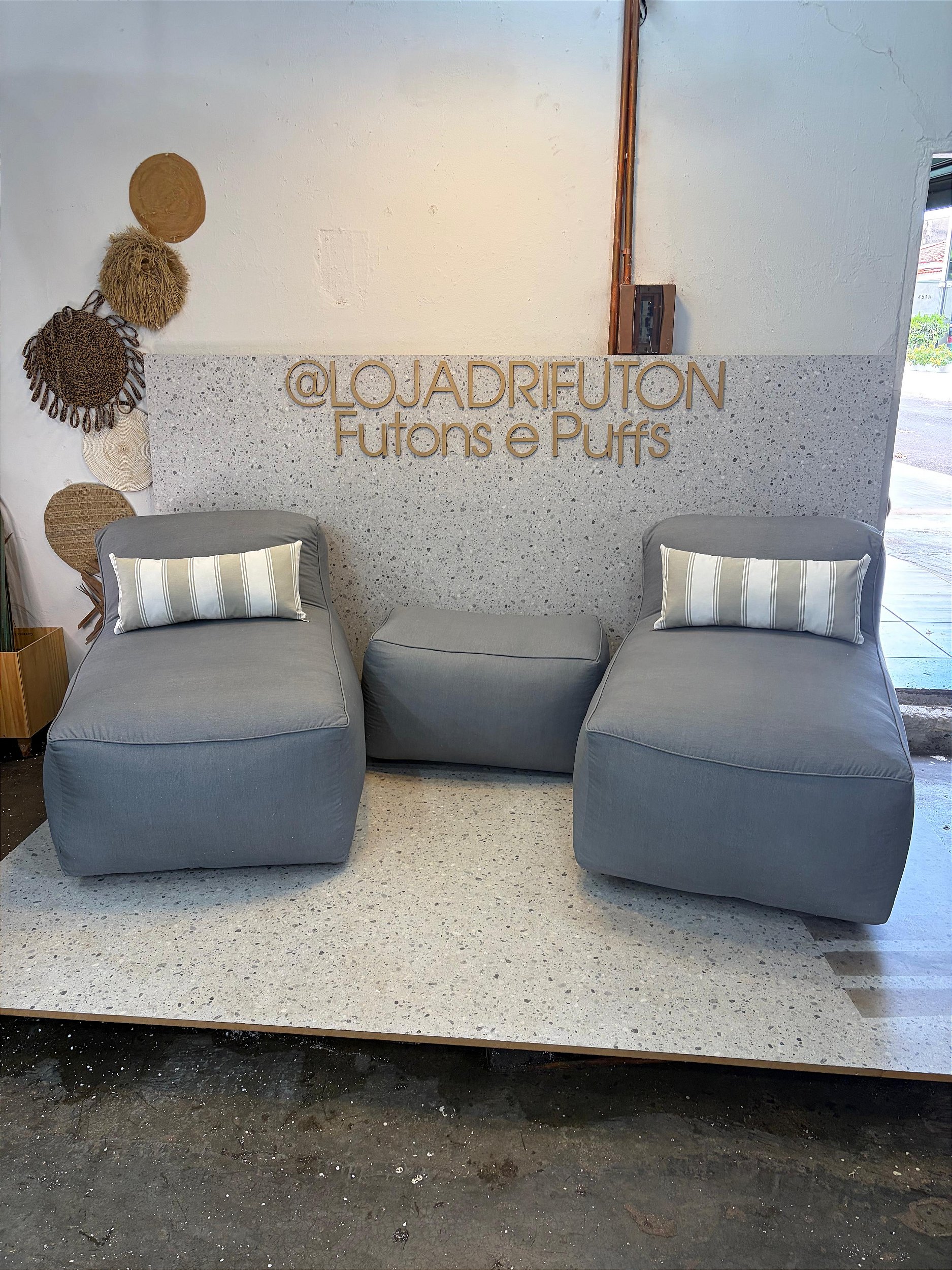 Conjunto Puff G Standard + 1 Peseira + 2 Almofadas cor cinza 336